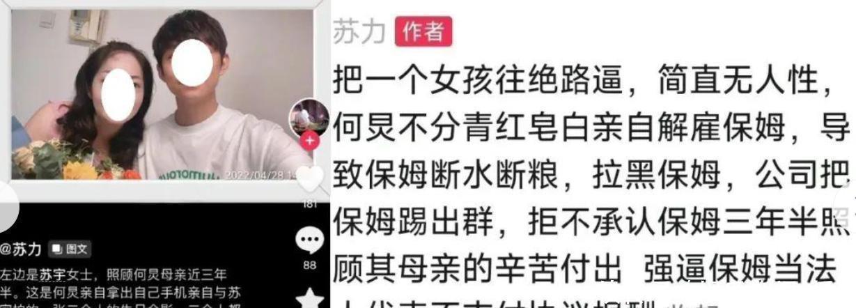 那会儿何老师的妈妈得了阿尔茨海默症,日子过得得靠别人帮衬着。那段时间他忙得满城跑,各地跑通告、录节目,别说全天照料了,就连吃顿像样的饭都得硬挤出来时间。实在没招,就只能通过熟人找了个叫苏宇的保姆,好专门帮忙照顾妈妈。